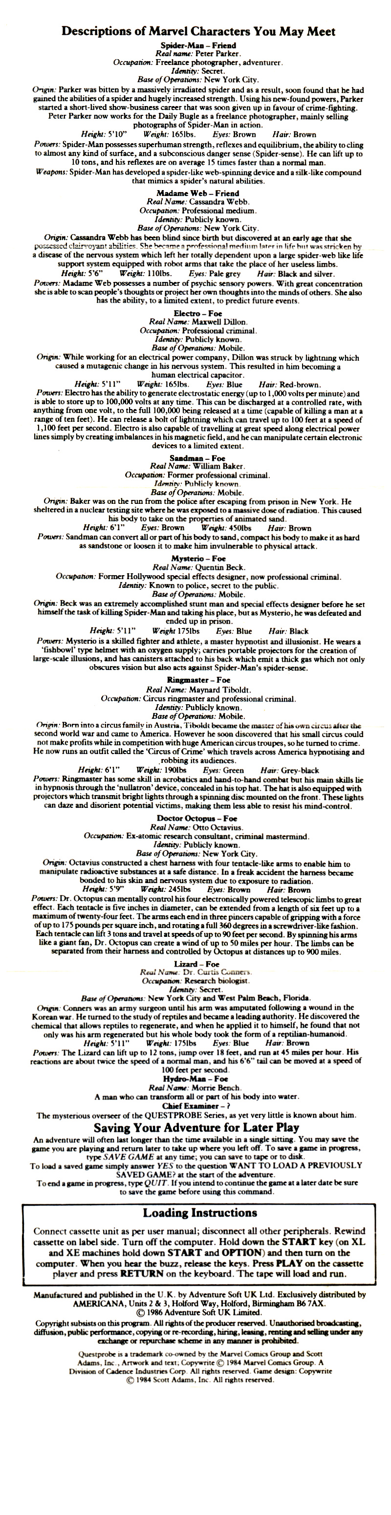 Bardzo fajna przygodówka tekstowa z serii Questprobe. Poza tym w cyklu są jeszcze #1 Hulk i #3 Fantastic Four.